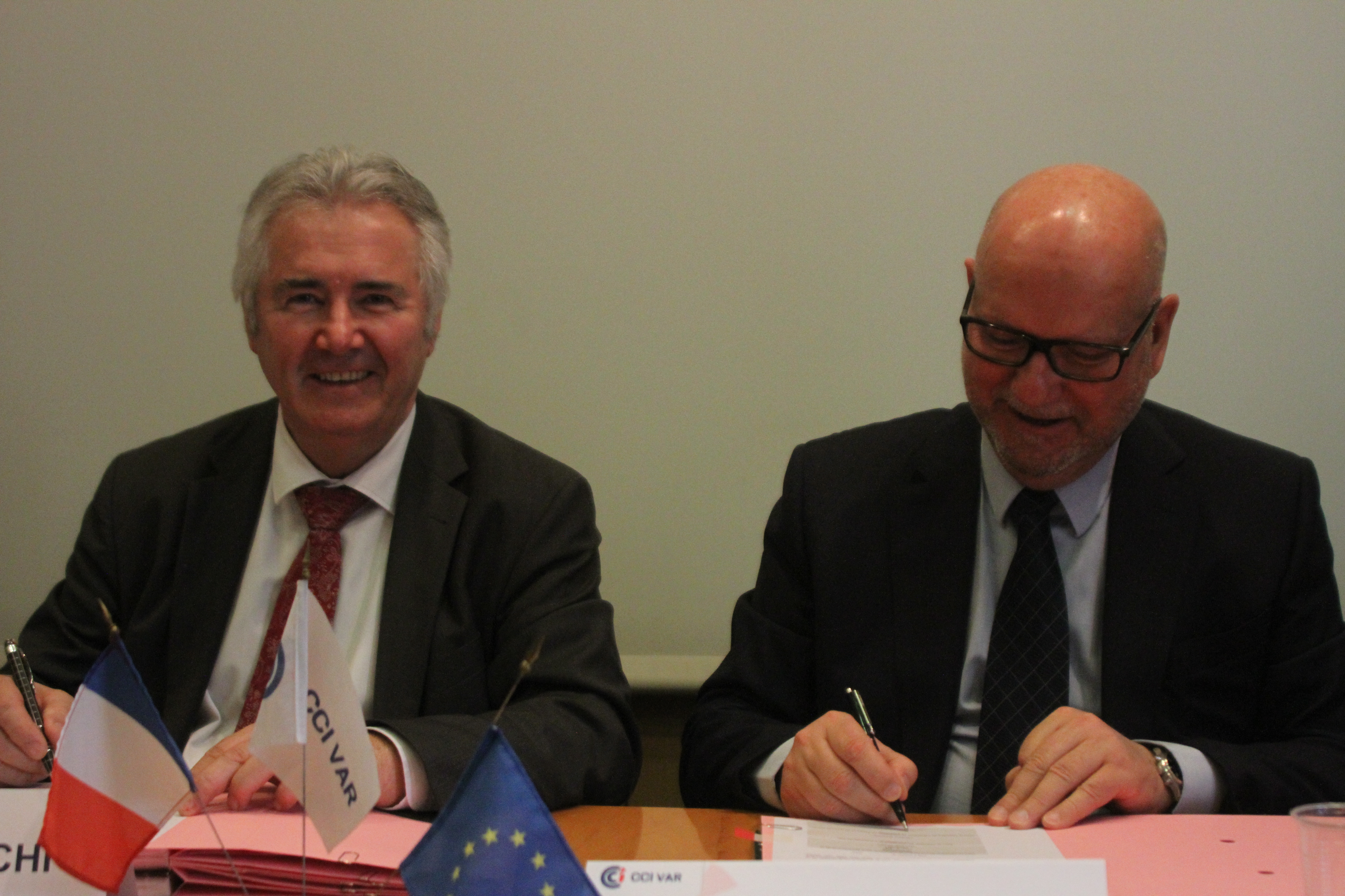 Les chambres de commerce et d’industrie de Livourne, du Var et de la Haute-Corse ont signé leur première convention de partenariat ce mercredi 29 mars 2017 au siège de la CCI du Var à Toulon.