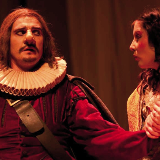 La pièce relate en cinq actes la vie de Cyrano de Bergerac, héros tragique et attachant dont léclat de la verve et de lépée na dégal que la longueur de son nez.