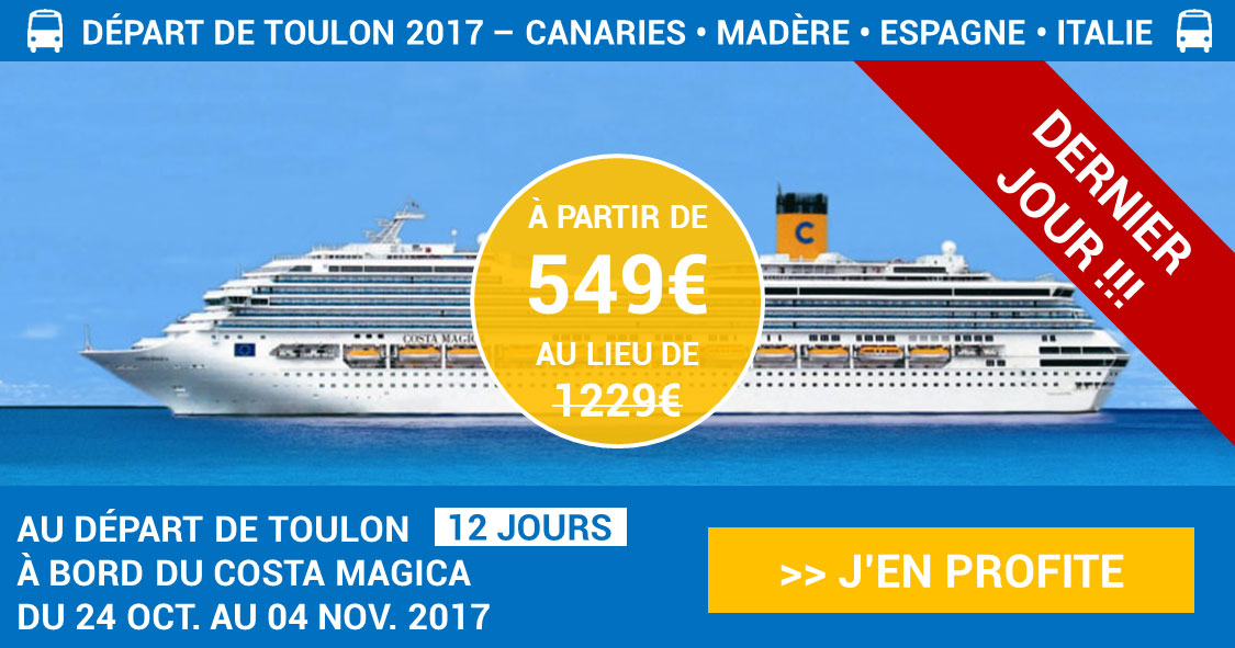 DERNIER JOUR pour réserver, avec info83 et Cap Croisières Voyages, votre croisière de 12 jours au départ de TOULON du 24 octobre au 4 novembre 2017 direction les Canaries à partir de 549€ par personne ! Demandez un devis gratuitement au 04 98 01 64 64 ou sur www.capcroisieres.com
