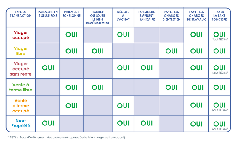 - nue-propriété : l’acheteur acquiert la propriété du bien sans droit d’usage immédiat.