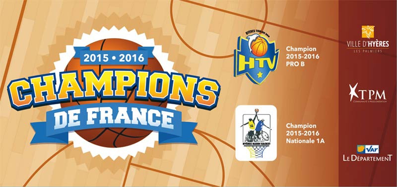 Les titres de Champions de France saison 2015-2016 obtenus par Hyères Toulon Var Basket et Hyères Handi Club Basket