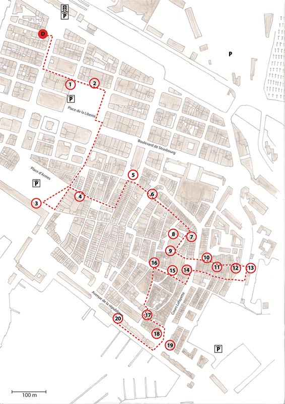 A la recherche des étapes successives du développement de la cité depuis le Moyen-Age jusqu’à nos jours. Repérage des points singuliers du patrimoine architectural : ornementation des façades et des portes d’immeubles (bas-reliefs, sculptures), altanas et autres curiosités….