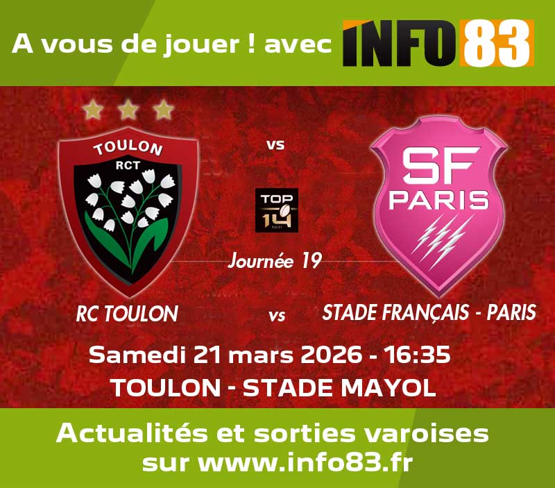 Rendez-vous sur le facebook d’INFO83 du 13 au 17 mars 2026 pour participer au jeu concours.