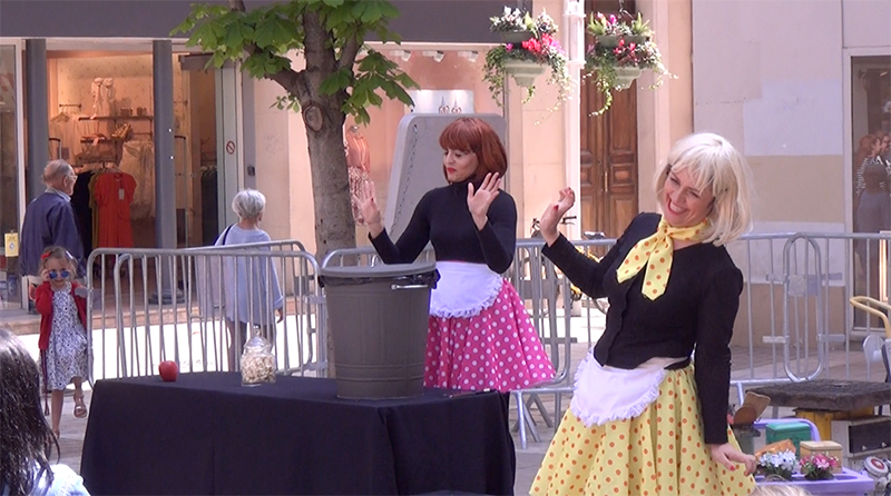 Mercredi 25 Avril, la place Puget à Toulon a accueilli un spectacle de rue hilarant : une reprise de Blanche Neige par la compagnie de théâtre Divine Machine. Un événement parmi tant d’autres, proposé par l’Association Les Vitrines de TOULON, qui permet de faire bouger la ville. Cette représentation loufoque et bourrée d’imagination a fait le bonheur des petits et des grands dès l’âge de 4 ans. Les deux comédiennes Stéphanie Slimani et Corinne Floch tentent de promouvoir un théâtre expressif, talentueux mais surtout attractif. A noter que l’association des commerçants Les Vitrines de Toulon proposent tout au long de l’année de nombreux événements de ce genre…à suivre…