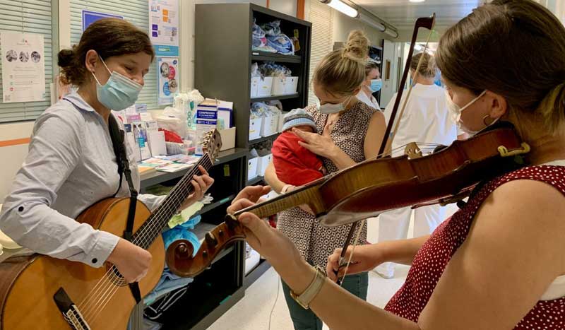 Ainsi bébés, enfants, adolescents, personnes âgées, familles et soignants rencontrent-ils la musique à leur chevet ou au détour d’un couloir de pédiatrie, néonatalogie, chirurgie infantile, maternité, psychiatrie, gériatrie, soins palliatifs, unités Alzheimer, et même en milieu carcéral.
