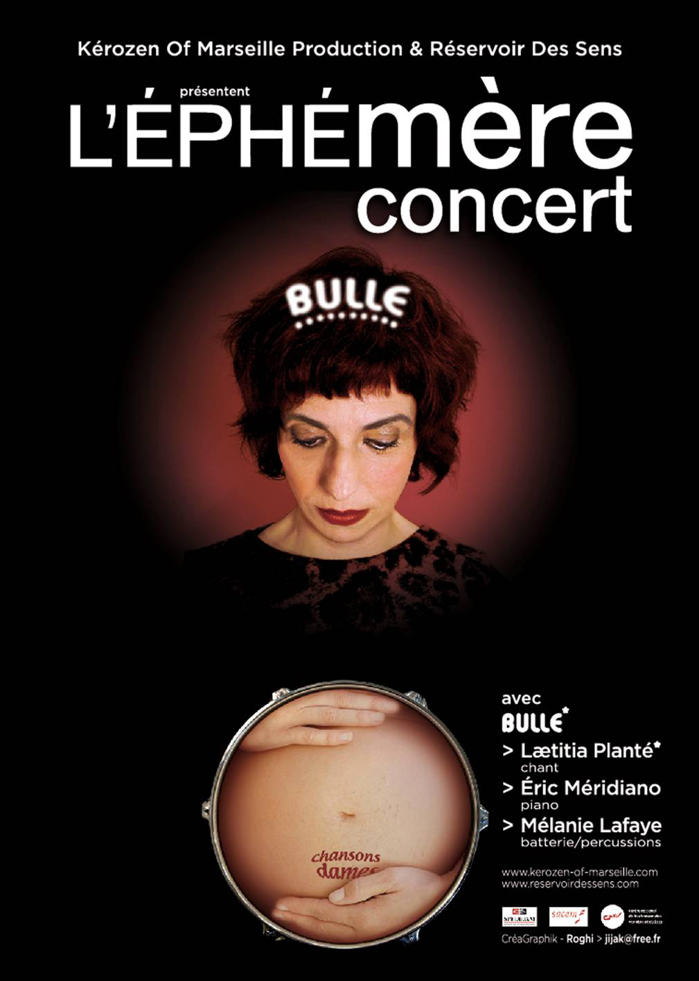 Elle vient sur scène, vous présenter ses nouvelles nées, des compositions originales qui ont éclaté telles des bulles de poésie en hommage à la mère qu’elle est devenue.