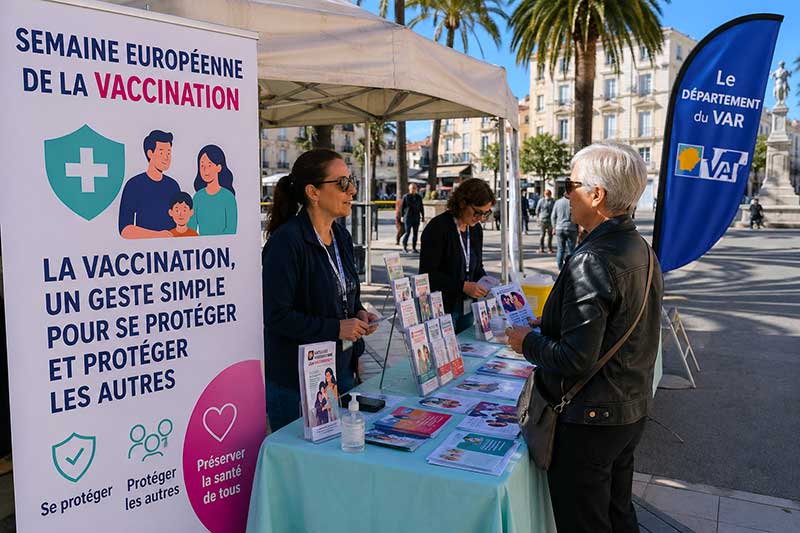 Mercredi 29 avril 2026, le Square Bortolaso à Toulon accueille une action collective de sensibilisation à la vaccination, portée par le Département du Var, la Ville de Toulon et l’ARS. Objectif : informer, rassurer et améliorer la couverture vaccinale, notamment auprès des publics les plus éloignés du système de santé.